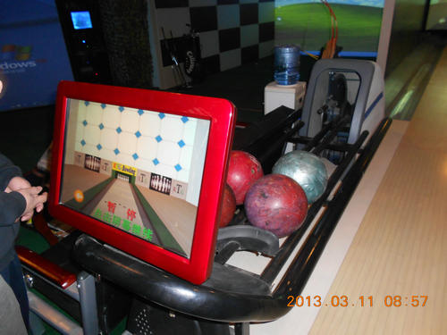 模擬保齡球,9萬元一道,新道板。一個道寬1.9米,兩道寬3.5米,共用一個回球系統。道長12-13米為好。